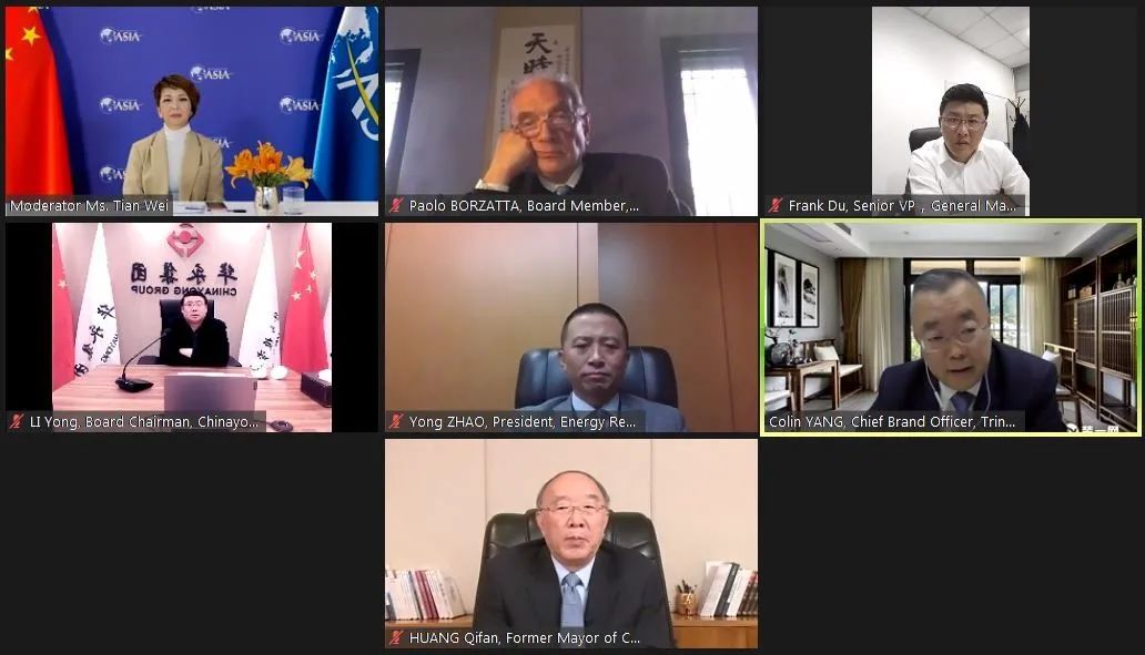 天合光能首席品牌官杨晓忠应邀出席“亚欧合作对话”特别会议并参与“亚欧经济前景展望”圆桌讨论。此议题的探讨由中国环球电视网主播田薇主持,重庆市前市长黄奇帆、清华大学中国经济思想与实践研究院院长李稻葵做主旨演讲,中国华能集团、华永集团、安博思集团、意大利天然气基础设施公司等企业代表参与讨论。