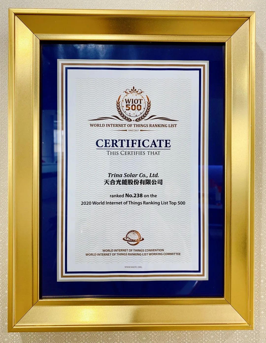 “再攀高峰”!天合光能入选2020世界物联网排行榜500强 排名提升104位