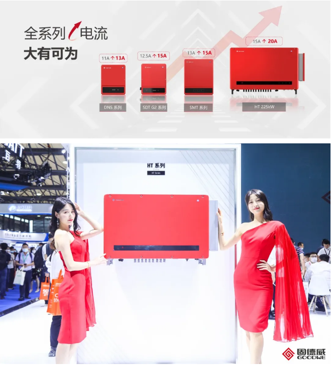 另外,大尺寸组件在分布式市场也得到广泛应用,固德威户用王牌机型SDT G2系列和工商业王牌机型SMT系列也将电流最大提升至15A,完全兼容市场上的180和210大尺寸组件。并且针对大电流带来的安全疑虑,经过长时间实证的固德威AFCI2.0直流拉弧检测技术可以让光伏电站更加安全稳定,保障客户的财产安全。