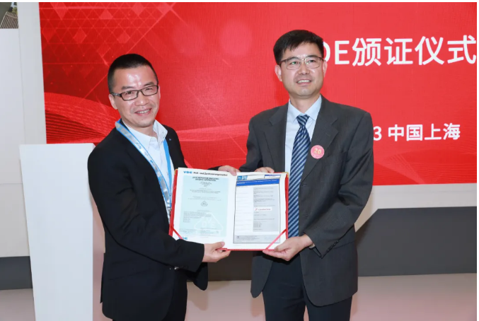 德国VDE(德国电气电子及信息技术协会)授予阿特斯IEC61215/61730光伏组件证书(上图)。