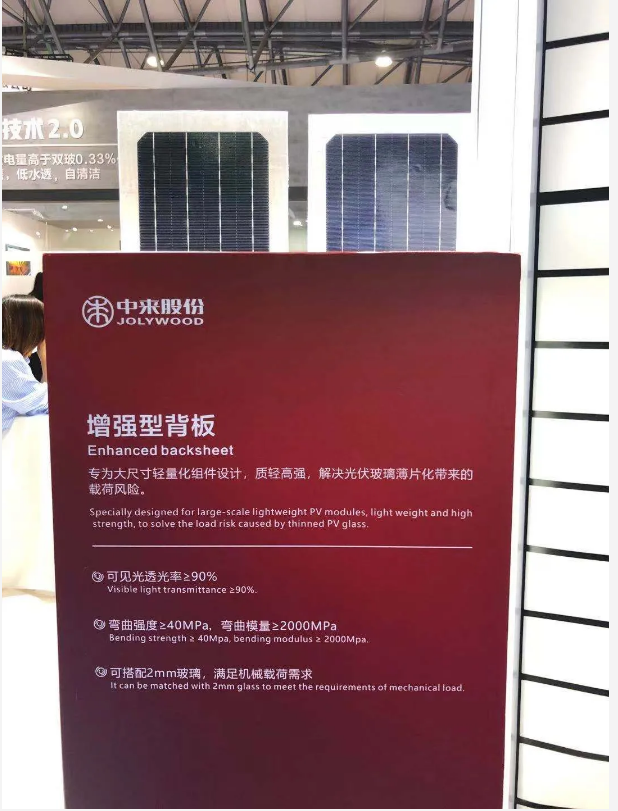 增强型背板专为大尺寸轻量化组件设计,质轻高强,解决光伏玻璃薄片化带来的载荷风险,是大尺寸组件的背板解决方案。