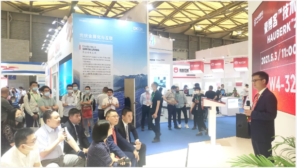 在这次展会上面,中来召开了“豪博客™技术2.0发布会”,其自主研发的豪博客™技术,实现了材料,装备,工艺的三大创新,两大突破:高耐紫外,高透光率。此次发布的豪博客2.0技术,增添了四大功能,突出高发电增益,高耐磨,低水透、自清洁能力。豪博客™技术的纳米材料也得到了现场客户的广泛关注,咨询络绎不绝。