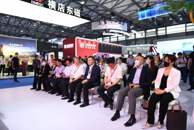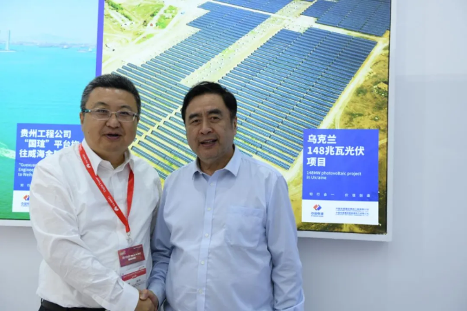 在今日的签约仪式活动开始前,赵振元还前往阳光电源和中来股份的展台参加双方的会谈与签约活动,并同阳光电源董事长曹仁贤、中来股份董事长林建伟等亲切交流与会谈。活动后,赵振元还与友邻展台中国电建集团贵州工程有限公司董事长郭玮见面亲切交流。