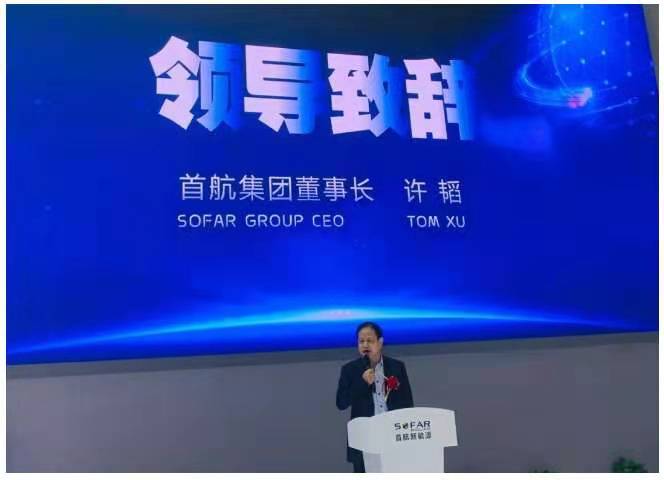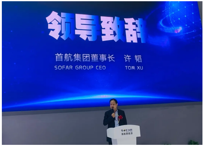 6月3日下午发布会环节,首航新能源董事长许韬发表致辞,未来公司将光储产品为核心,丰富核心光储技术应用,创造更多绿色清洁能源,响应国家能源战略,助力碳达峰、碳中和。其中对于本次展会的新品方面,许总着重介绍了家用混合储能堆叠一体机,指出该系列机型在国内外市场的影响力,把光储互融技术真正落实到产品,落实的实实在在的市场应用。