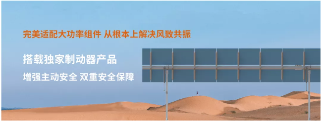 首创制动器产品装置,集驱动、制动于一体,增强支架主动安全性,避免风致共振造成破坏,尤其适用于大功率组件。