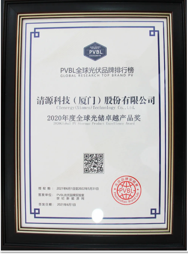 6月1日,由世纪新能源网、光伏品牌实验室联合主办的第六届世纪光伏大会隆重发布“PVBL2020光伏品牌排行榜”。清源股份凭借优质的产品及专业严谨的服务,荣获“全球光储卓越产品奖”。
