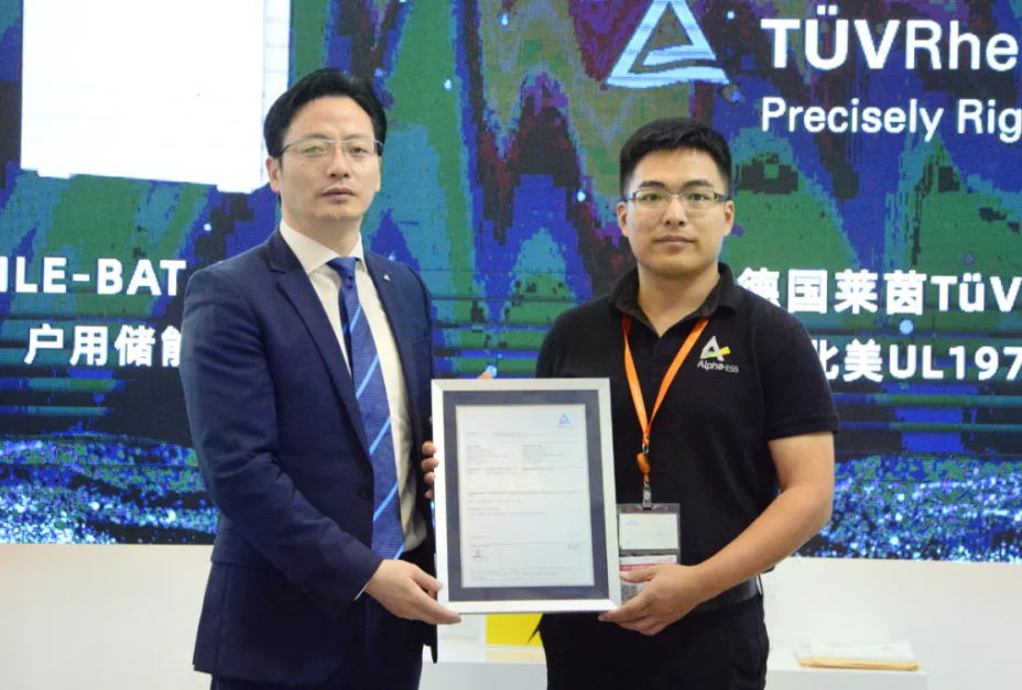 继展会第一天SGS为沃太能源颁发了UL 9540认证证书。