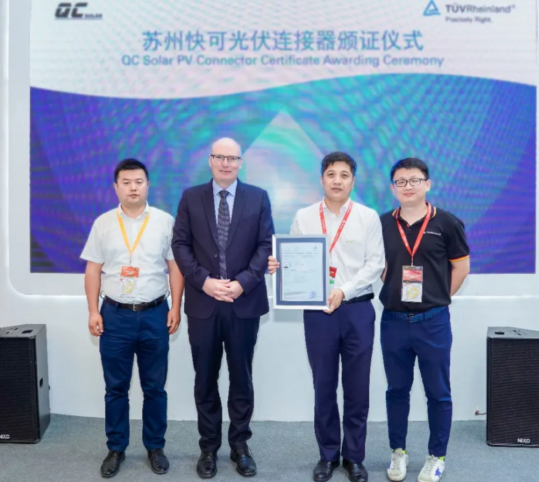 TÜV莱茵与苏州快可双方的合作始于2009年,在光伏接线盒、光伏连接器及储能连接器等领域,以及在产品推广与产品测试研究等方面都有深入合作,快可全系列产品均取得了TÜV莱茵认证。此次证书的获得,既是快可光伏研发实力的体现,同时也是快可光伏与TÜV莱茵再次牵手的深度写照。这标志着快可光伏连接器的可靠性得到市场及权威机构认可,为迎接大功率组件时代的到来,奠定了坚实的基础。