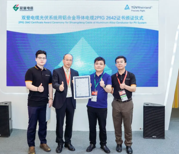 双登电缆股份有限公司创建于1985年,于TÜV莱茵合作始于2013年。双登电缆坐落在历史文化名城中国泰州,是一家以传统电缆和新能源电缆相结合的电缆制造企业。“以优质求生存,以创新谋发展,以服务树信誉,以管理增效益”是公司在发展征程中永远不变的经营理念。双登电缆股份此次成功试制并成功的铝合金导体光伏电缆。是全国首批拿到该产品认证证书的行业标杆型企业,为光伏电站的技术革新和降本提供了一个重要先决条件。除此之外,双登电缆也在包括风能、汽车、储能等新兴领域开拓了具有市场竞争力的电缆产品。