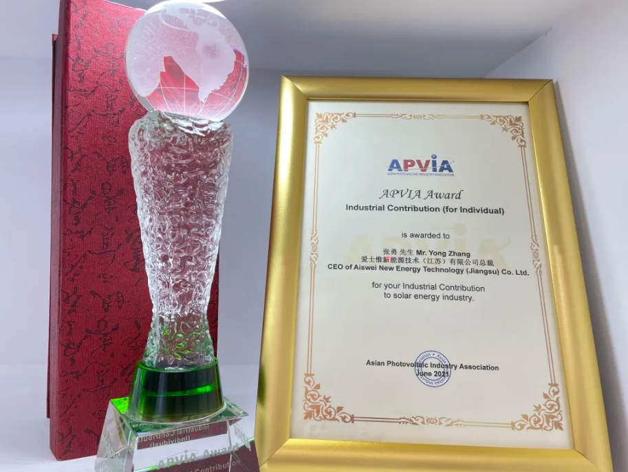 此次展会,爱士惟荣誉不断。展会前夕,爱士惟总裁张勇博士荣获亚洲光伏产业协会(APVIA)颁发的“产业贡献奖-个人类”,该项荣誉不仅是行业对张勇博士个人贡献的充分肯定,也是对爱士惟实力及影响力的广泛认可。