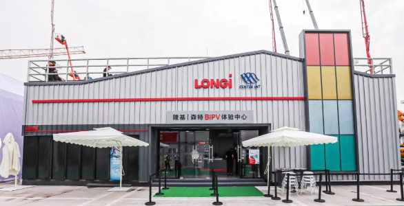 此次展会是隆基、森特双方在建筑领域的首次携手亮相;也是实体化光伏建筑一体化展区首次出现在建筑类专业展会。作为本届展会中唯一的实景化光伏建筑一体化展示体验区,隆基森特BIPV体验中心通过200平米真实应用场景展示,为本次展会和建筑领域带来了一种全新的绿色建筑实现方式和未来建筑形态。