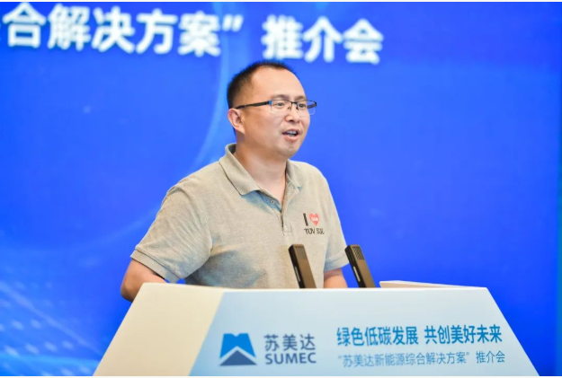 苏美达党委委员、副总经理、财务总监、董事会秘书,能源公司董事长王健介绍到,在“双碳”大背景下,苏美达能源通过数字化驱动、生态化运营,为客户量身定做“风光柴储充,绿电绿证、节能减排一体化的综合能源解决方案”,提供包括分布式光伏及风电、电站资产运维、储能、柴油发电、充电桩、碳资产管理等在内的全方位专业化服务,助力企业解决发展瓶颈,实现绿色低碳转型。