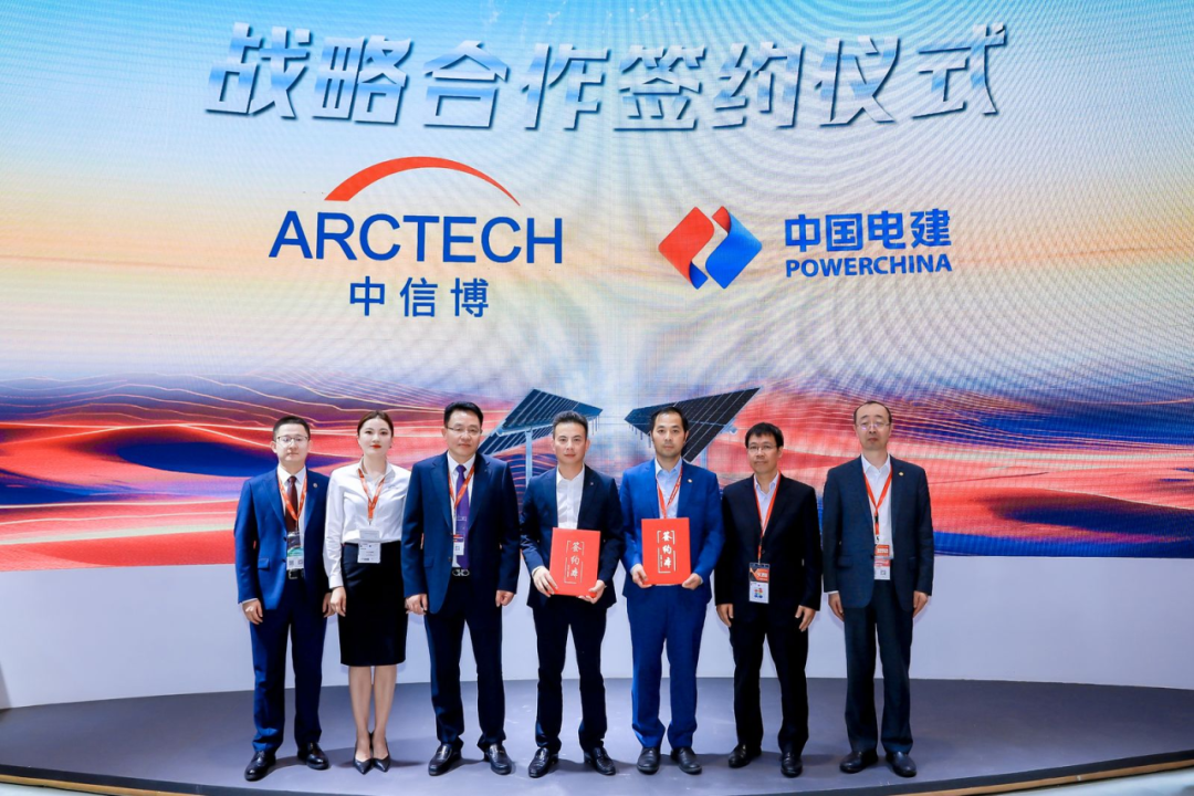 展会首日,中信博与东方电气、电建国际、中能建建筑等多家头部EPC企业达成并签署战略合作协议,同时于现场签约包括与中国电建华东院沙特1.2GW、中能建建筑鄂尔多斯500MW等多个项目。