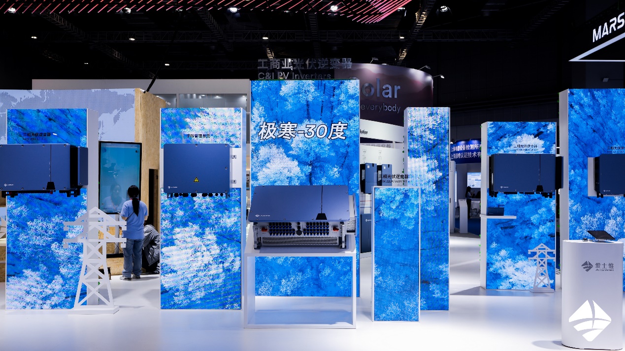 在充满科技感与时尚感的展台上,爱士惟众多主力产品悉数亮相,覆盖了从户用到工商业,再到地面电站等不同应用场景。