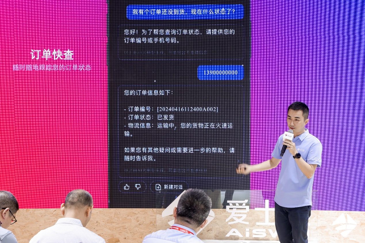 在产品展示区,通过摆放场景、细节装饰的配合,在光影之间将爱士惟产品的工业之美展现得淋漓尽致。在互动体验区,观众不仅可以通过降噪耳机了解爱士惟产品的低噪功能,通过触摸屏和搭配的模型了解产品阴影管理的功能,通过矩阵屏了解产品在极端和恶劣条件下的适应,还可以与爱士惟刚刚发布的光伏行业首个人工智能+产品进行对话互动,一探智慧能源管理的未来图景。