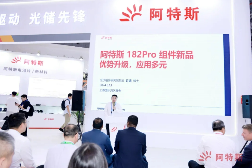 展会当天上午10点28分,阿特斯新品发布会隆重举行。阿特斯博士团队携手推出了兼具高效化、高品质、高性价比优势的新品组件、逆变器,完美适配、双剑合璧,以及畅销全球的SolBank储能系统。这些创新产品将助力全球能源结构向电力化、清洁化转型,为客户创造更高价值。