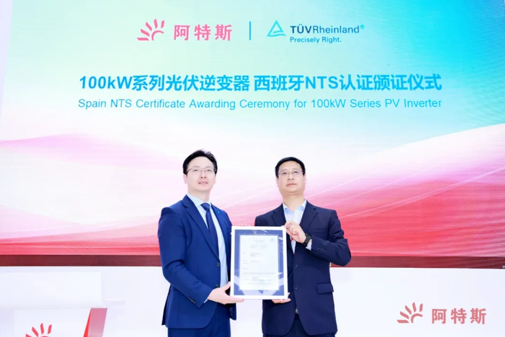 阿特斯100kW系列光伏逆变器获颁西班牙NTS认证