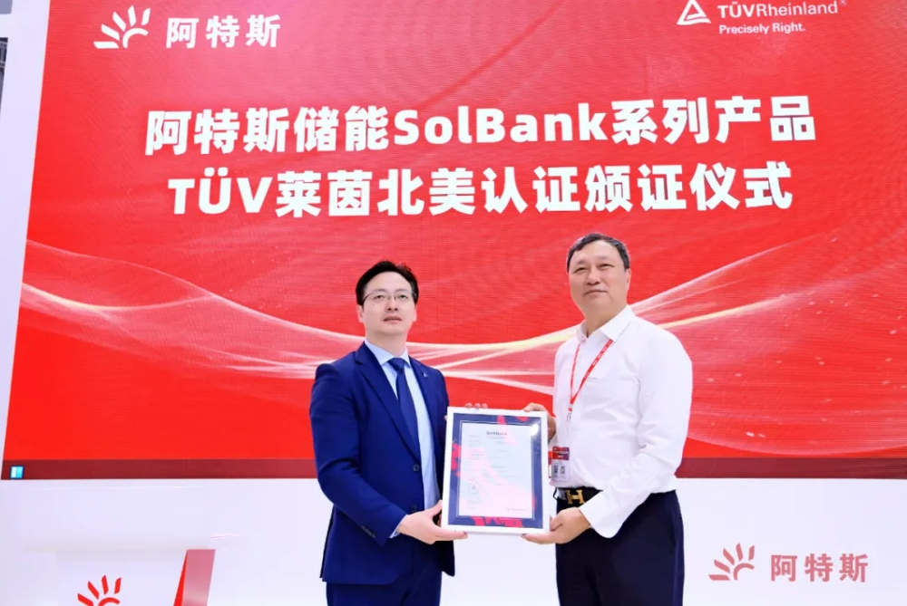 阿特斯SolBank系列储能产品获颁TÜV莱茵北美认证