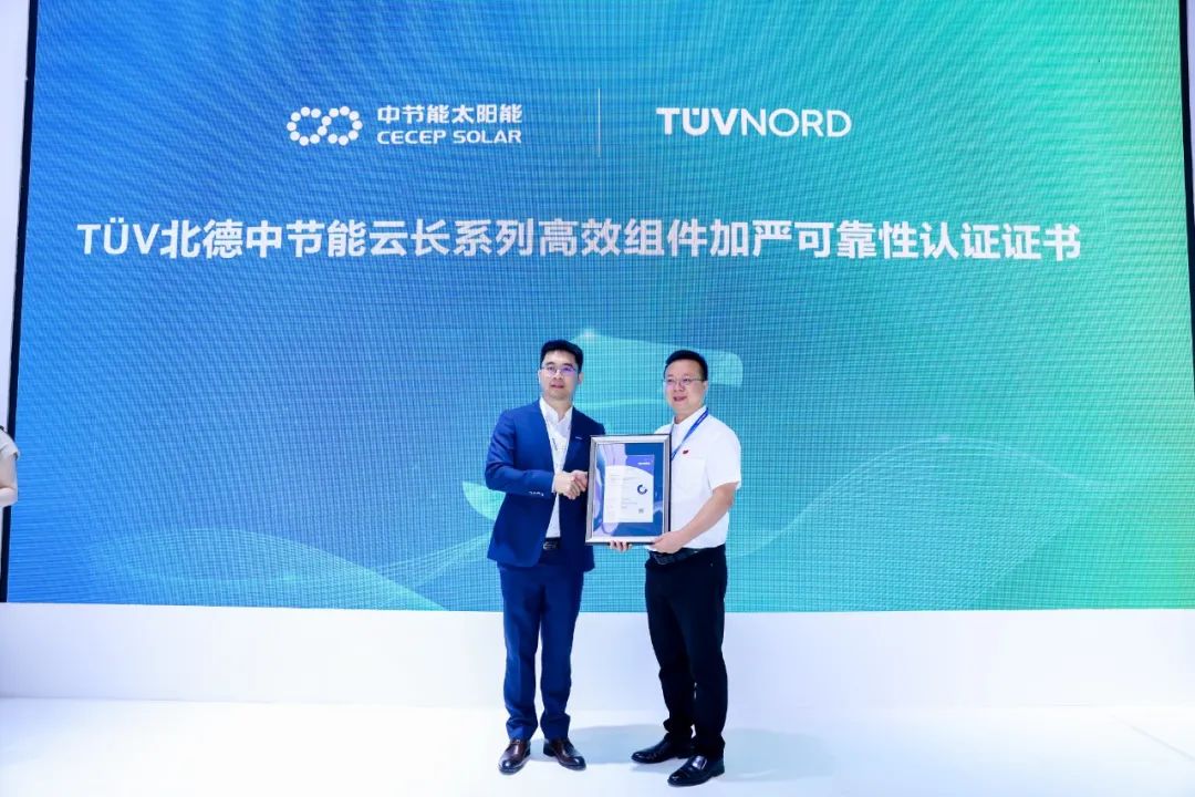 云长系列高效组件效率可达720W,凭借其优异的性能表现,获得TUV北德授予“中节能云长系列高效组件加严可靠性认证证书”