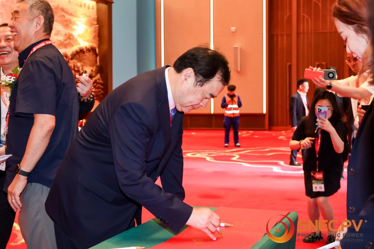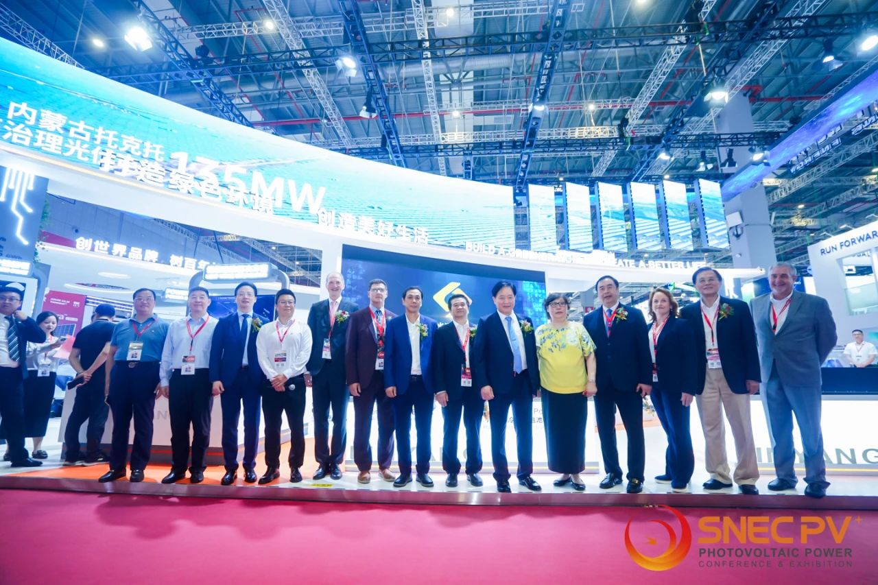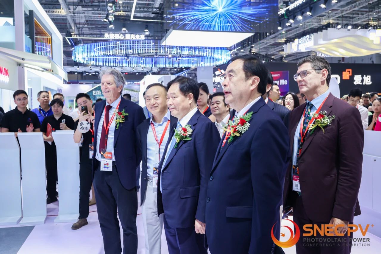 出席剪彩仪式的领导、行业领袖、大咖有:上海市工业经济联合会、市经济团体联合会会长管维镛,上海市新能源行业协会会长朱凯,SNEC光储氢产业联盟盟主、全球绿色能源理事会主席、亚洲光伏行业协会主席、协鑫(集团)控股有限公司董事长朱共山,中国可再生能源学会副理事长、中国科学技术交流中心原党委书记陈志敏,中国可再生能源学会副理事长祁和生,澳大利亚国家科学和工程技术院院士、上海电力大学教授、上迈新能源董事长施正荣,中国机电产品进出口商副会长石永红,国家能源研究会常务理事、国家气候战略中心学术委员会主任李俊峰,上海市工业经济联合会执行副会长兼秘书长裴崎,上海市闵行区投资促进中心主任顾耀强,中国建材集团首席营运官,凯盛科技集团党委书记、董事长尹自波,临沂市人大常委会副主任陈一兵。