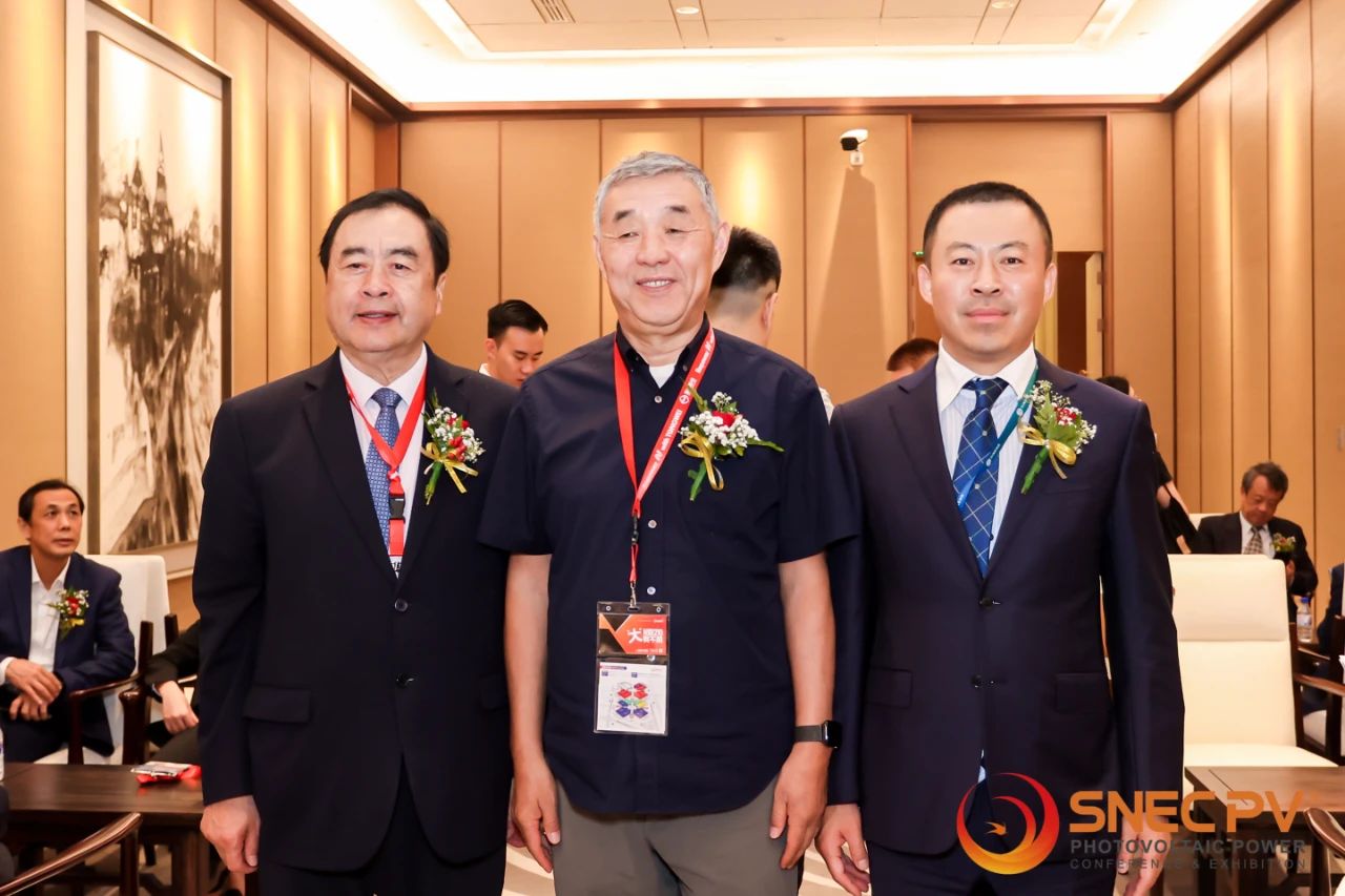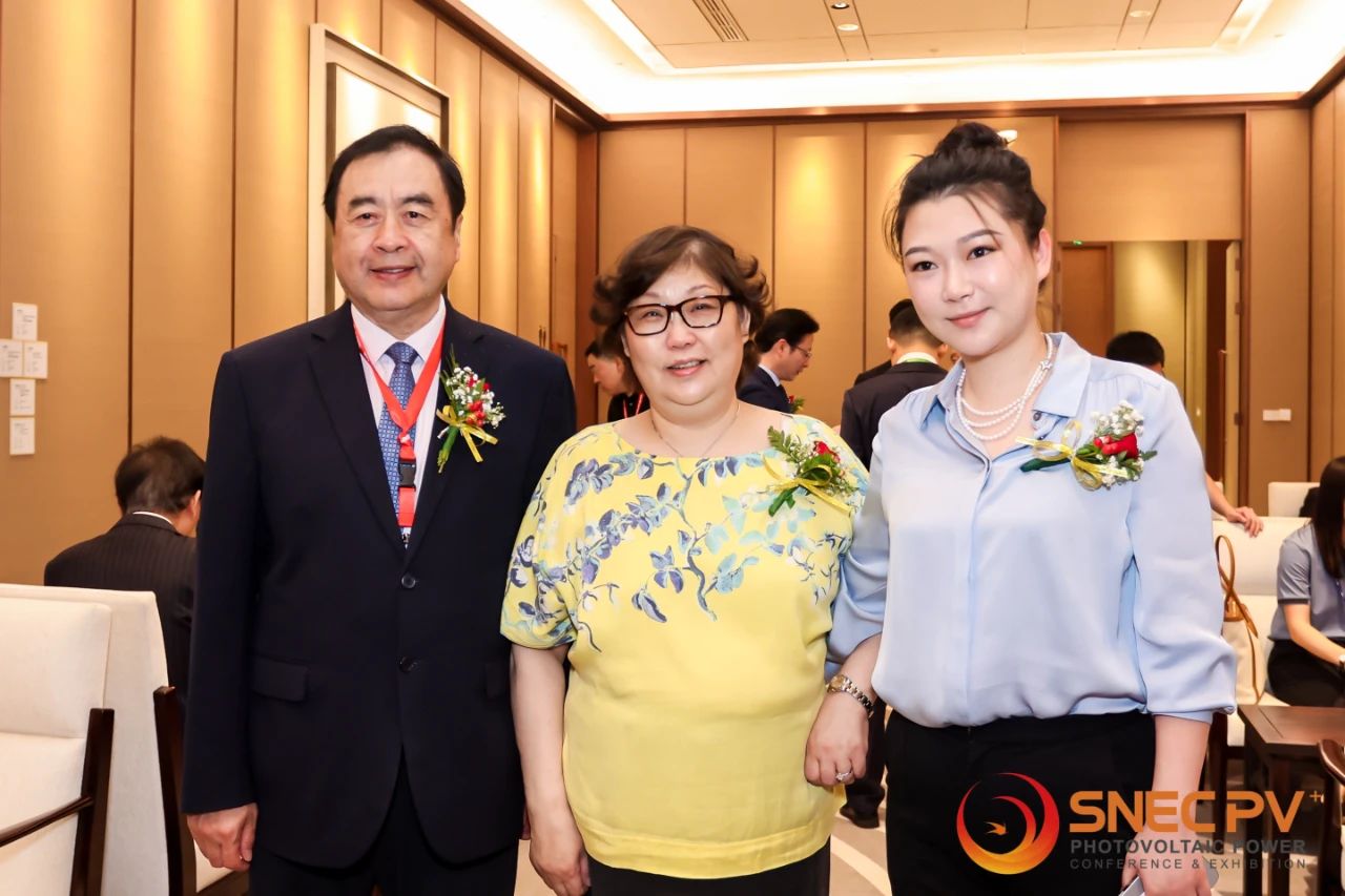 赵振元与SNEC创始人、亚洲光伏产业协会常务副主席米月,通威股份有限公司董事长、CEO、四川省川联光伏产业商会会长刘舒琪合影留念