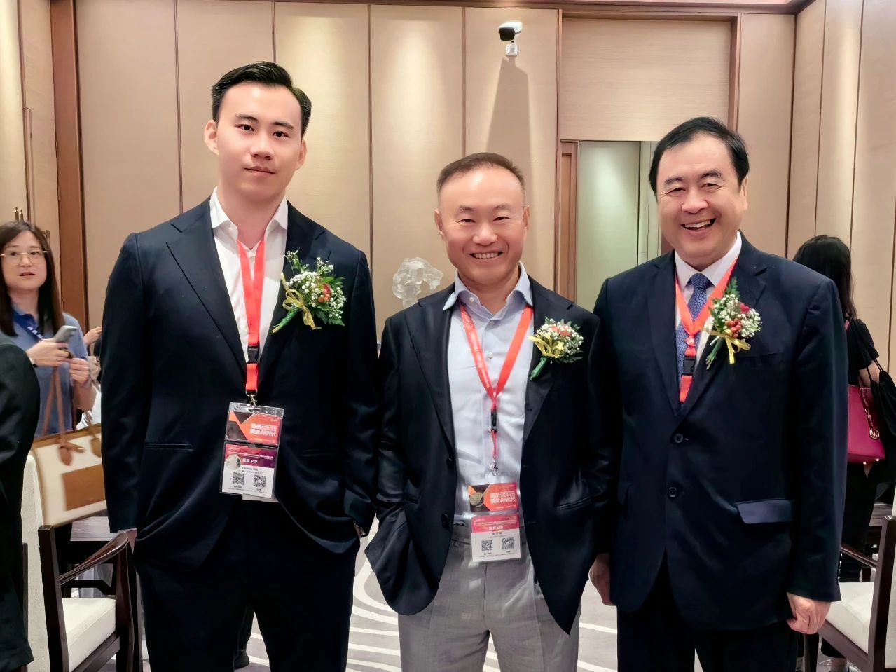 赵振元与上迈新能源董事长施正荣、销售总监Dennis Shi合影留念