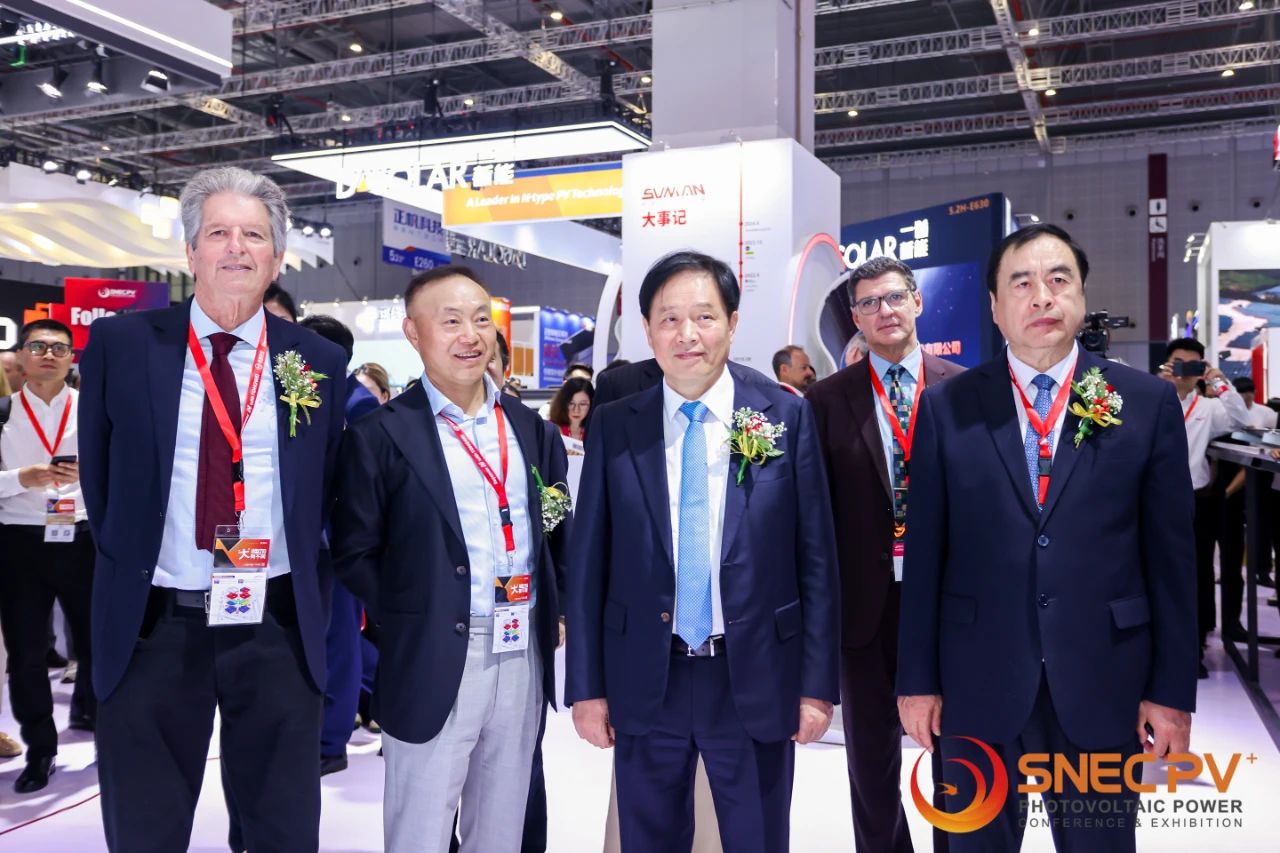 十一科技董事长赵振元出席SNEC PV+第十七届(2024)国际太阳能光伏与智慧能源(上海)大会展览会开幕式并参加共同巡馆,展览会共计3500多家企业参展,规模空前盛大