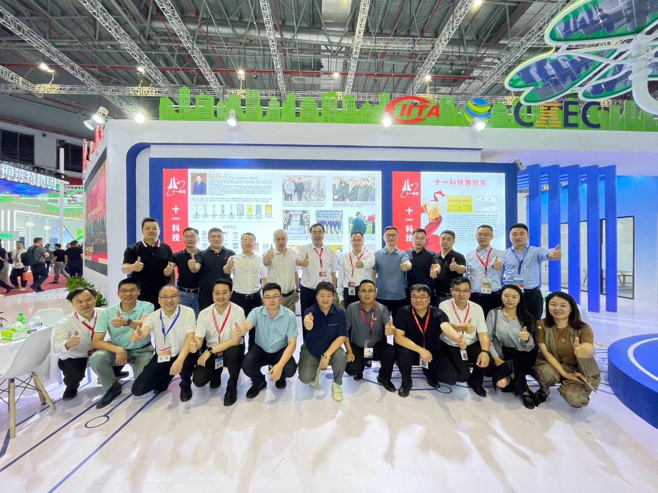开幕式后,行业领袖嘉宾与专家进行了集体巡馆。十一科技所在的展馆作为第一个巡馆点,迎来了与会领导嘉宾,大家在十一科技展台前合影留念。