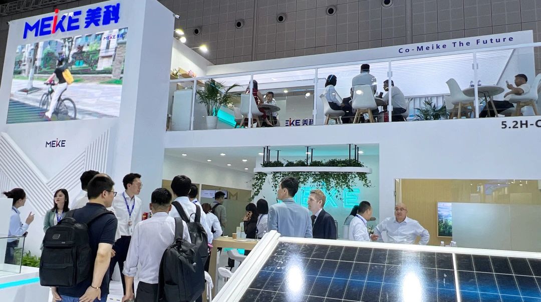 SNEC 2024展会上,美科以“和合而生 美美与共”为主题,标志性的“M”造型不仅是Meike的记忆标识,更是携手共赢的象征。追光二十年,美科的发展历程中充满了与巨人同行、抱团取暖的创业故事,“M”背后,是美科对合作伙伴的感激之情,也寄托了共携手穿越周期的美好祝愿。