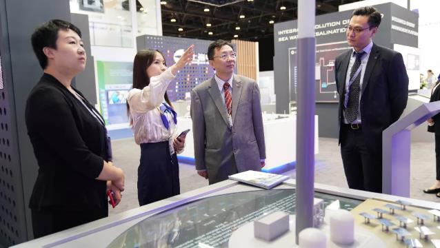 上海电气集团党委副书记朱兆开,党委委员、企业文化部部长董轶骏,在展会现场详细了解了上海电气展区情况。随后朱兆开一行会见了ACWA电力公司首席执行官帕迪,双方就迪拜项目的工程进度及今后更多的合作机会进行了深入交流。