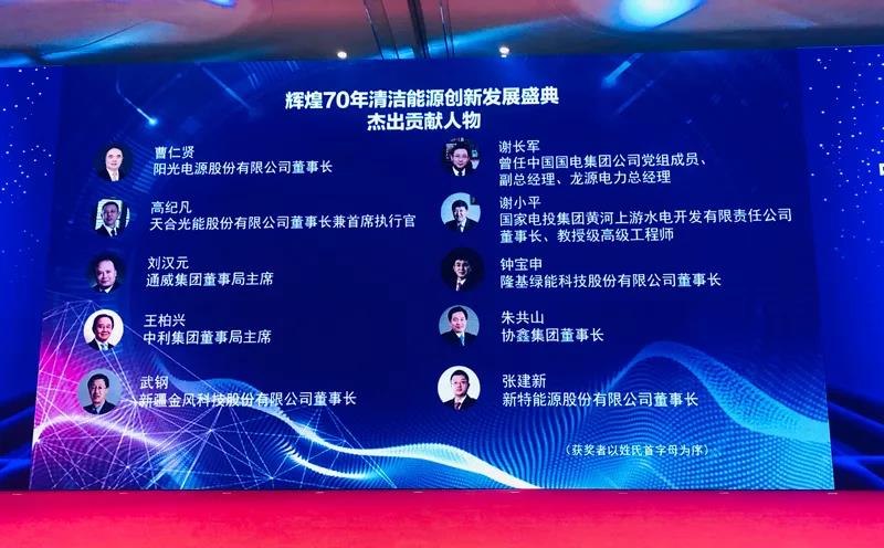 “中国清洁能源成就发布会暨辉煌70年清洁能源创新发展盛典”在杭州国际博览中心隆重举办。凭借多年来在清洁能源产业的深耕细作,黄河水电公司董事长谢小平被授予“中国清洁能源杰出贡献人物”,黄河水电公司被评为“重大科技创新企业”。