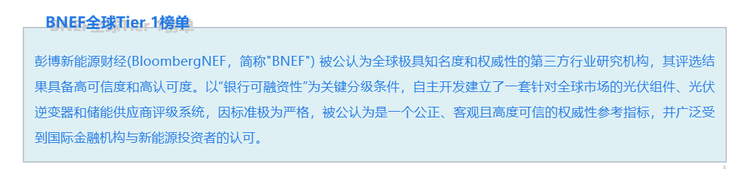 除了正泰新能凭借雄厚的可融资实力,连续多年位列BNEF全球光伏组件制造商第一梯队(Tier 1)。自彭博开设立全球顶级光伏逆变器制造商榜单(Tier 1)以来,正泰电源也因其领先的技术实力、产品品质、强大的融资能力以及显著的市场竞争力,连续连续五个季度稳居Tier 1榜单。此外,在今年10月发布的全球一级储能厂商榜单中,正泰电源亦榜上有名,实现逆变器、储能双榜Tier 1的佳绩,充分展现了强大的市场竞争力和行业影响力。