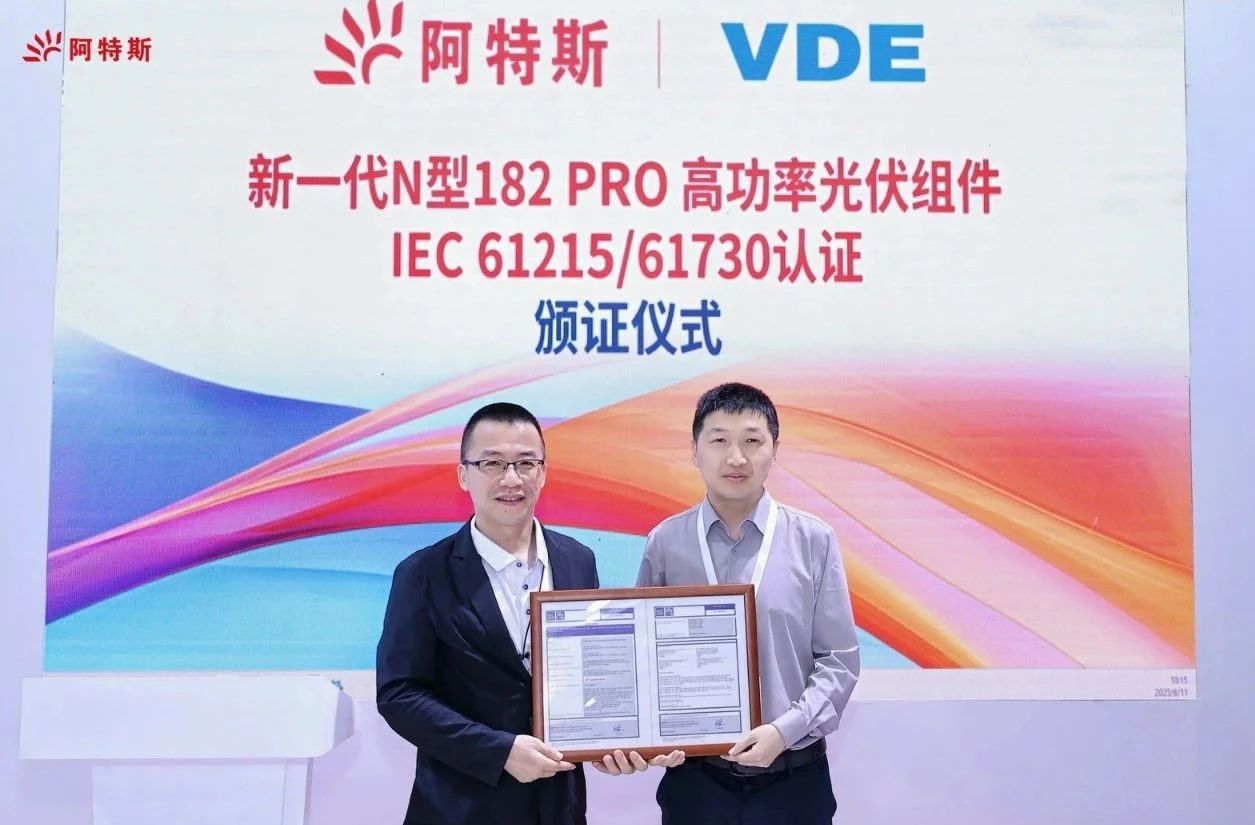 新一代N型182 PRO高功率光伏组件获VDE IEC 61215/61730认证颁证仪式