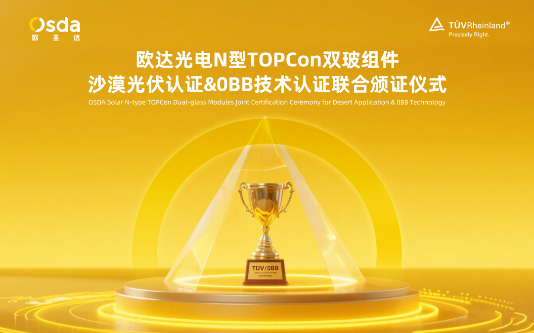 此次获得TÜV莱茵全球首批N型TOPCon双玻组件沙漠光伏认证及0BB技术认证,是欧达光电在光伏技术创新和产品质量提升方面的重要里程碑。未来,欧达光电将继续携手TÜV莱茵,共同推动光伏行业的高质量发展,为全球可再生能源事业贡献力量。