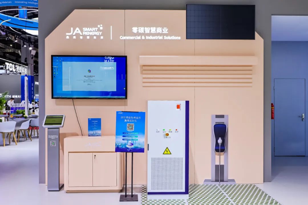 晶澳智慧能源零碳智慧商业展示区清晰呈现了涵盖光伏+、充电桩、BIPV、零碳园区、一站式平台等绿色能源解决方案。该方案精准匹配工业园区、商业体、数据中心等不同场景的复杂负荷与峰谷需求,为各行业提供稳定、高效、经济的绿色能源支持,助力千行百业加速低碳转型。展会现场,晶澳智慧能源发表题为“拥抱零碳新时代”的主题演讲,与各位行业专家共同探讨能源发展的未来路径。