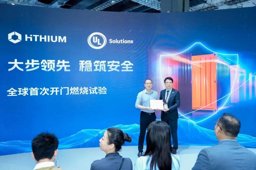 2025年6月11日,在上海SNEC展会现场,海辰储能于“大步领先 稳筑安全”产品安全技术分享会上,正式披露其∞Block 5MWh储能系统全球首次开门燃烧试验的完整成果,包括试验全流程、技术细节及权威测试数据,并现场获颁国际权威机构 UL Solutions 的大规模火烧试验认证证书。
