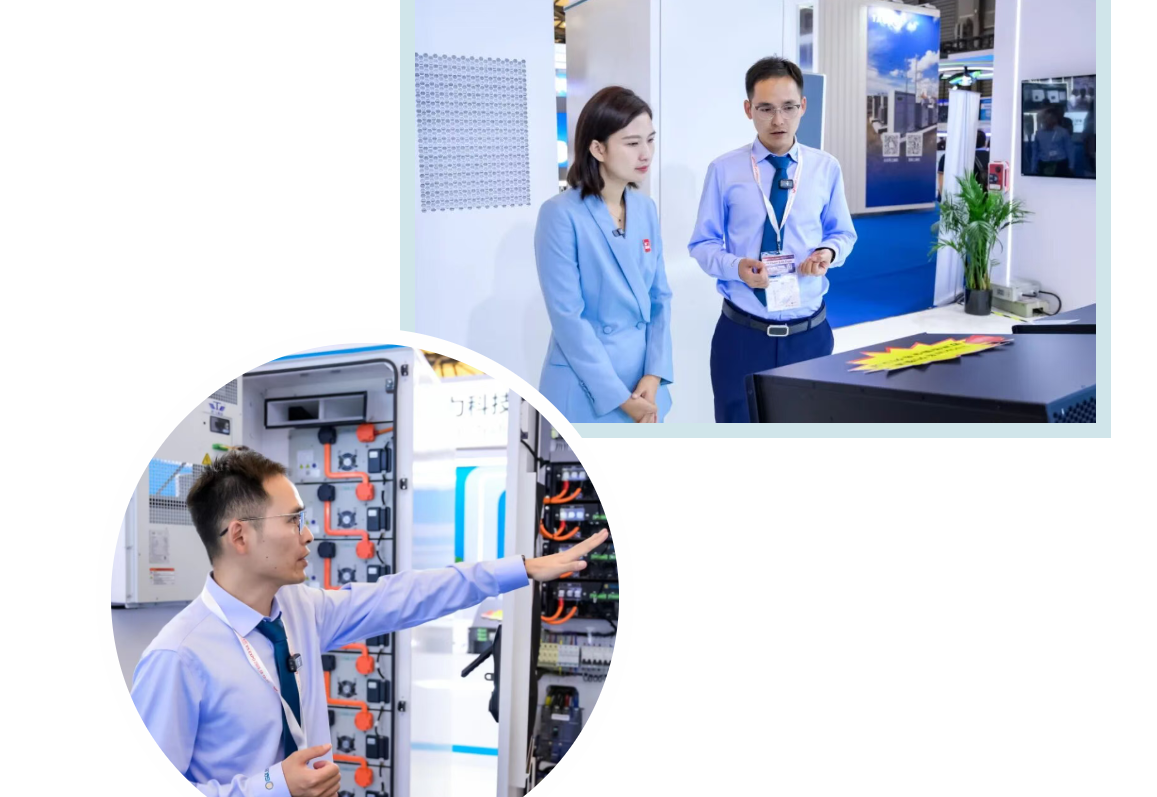 开幕伊始,冠隆电力展台便迎来一波又一波观展热潮。现场工作人员通过实机展示、动态演示、案例讲解等方式,详细介绍构网型微电网系统在多能互补、智能调度、安全供能等方面的优势。