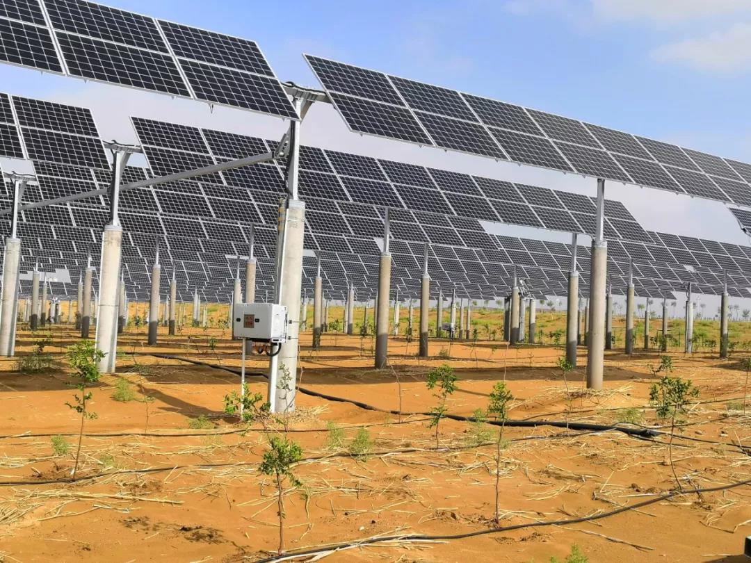 中广核长期关注并积极参与到防治荒漠化的研究与实践中,截至目前,在库布其沙漠腹地境内,控股在运在建光伏发电项目容量达50万千瓦,全部投产后,年发电量约9.5亿千瓦时,相当于减少标煤消耗35万吨,减少二氧化碳排放量87.2万吨,同时结合“种树+种草+养殖+发电+扶贫”一体的生态光伏产业模式,有效治理沙漠约22000亩,为当地荒漠化环境改善作出了贡献。