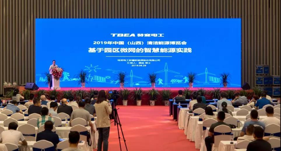 6月29日,2019 中国(山西)国际清洁能源博览会高峰论坛,特变电工新疆新能源股份有限公司微网产品线总经理黄浪博士围绕特变电工“一核、两驱、X场景”智能微网解决方案分享了《基于园区微网的智慧能源实践》主题报告。