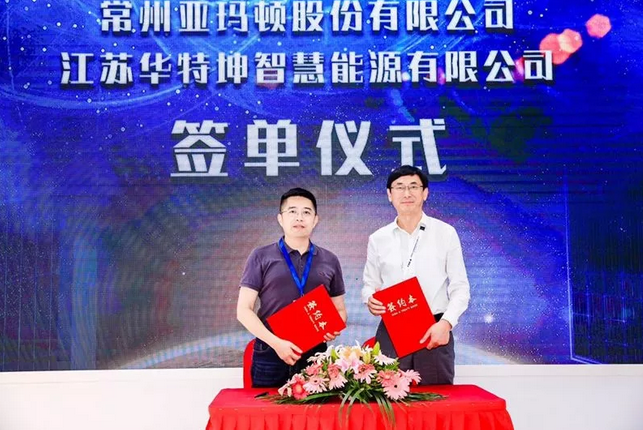 江苏华特坤智慧能源有限公司钟华执行董事和常州亚玛顿林金锡总经理登台签单。祝贺亚玛顿新产品成功收获首张订单!本次推出的新一代翼龙X系列带框双玻组件正反面采用1.6mm超薄物理钢化玻璃,搭配25mm轻质边框,重量仅11kg/㎡,比常规组件还轻1kg,具备最高8100pa的载荷能力。超轻薄的同时拥有与传统组件相媲美的高载荷,且具有双玻的无隐裂、高可靠性、耐候性等优势。翼龙X系列主要应用于对轻质要求比较高的项目,很多业主对于双玻组件有很多方面的担忧,比如安全性、易碎性、运输困难等等,那么这款翼龙X系列带框组件就是一个非常好的选择,拥有传统组件的优势的同时兼具了双玻组件的特性。