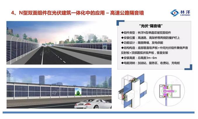 最后潘院长介绍了N型双面组件在建筑光伏一体化中的常见应用:光伏隔音墙、光伏围栏、建筑围墙、光伏车棚、光伏窗间墙、遮阴棚、建筑幕墙等,展现了双面组件在光伏建筑中广泛的应用和市场。