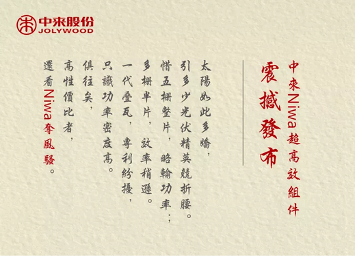 “夺领风骚”!中来Niwa超高效组件震撼发布!