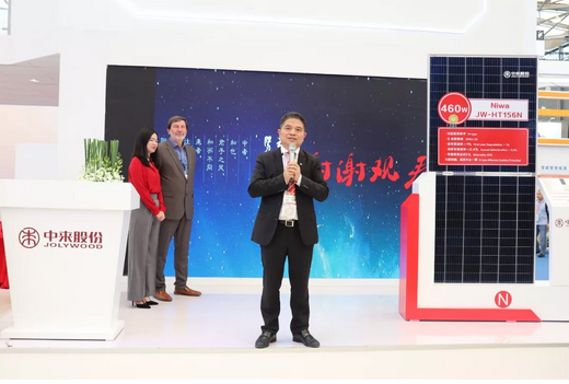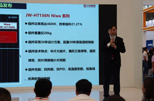 6月4日上午,Niwa超高效组件(JW-HT156N,功率460W)发布会在W5-330 中来股份展台隆重发布。