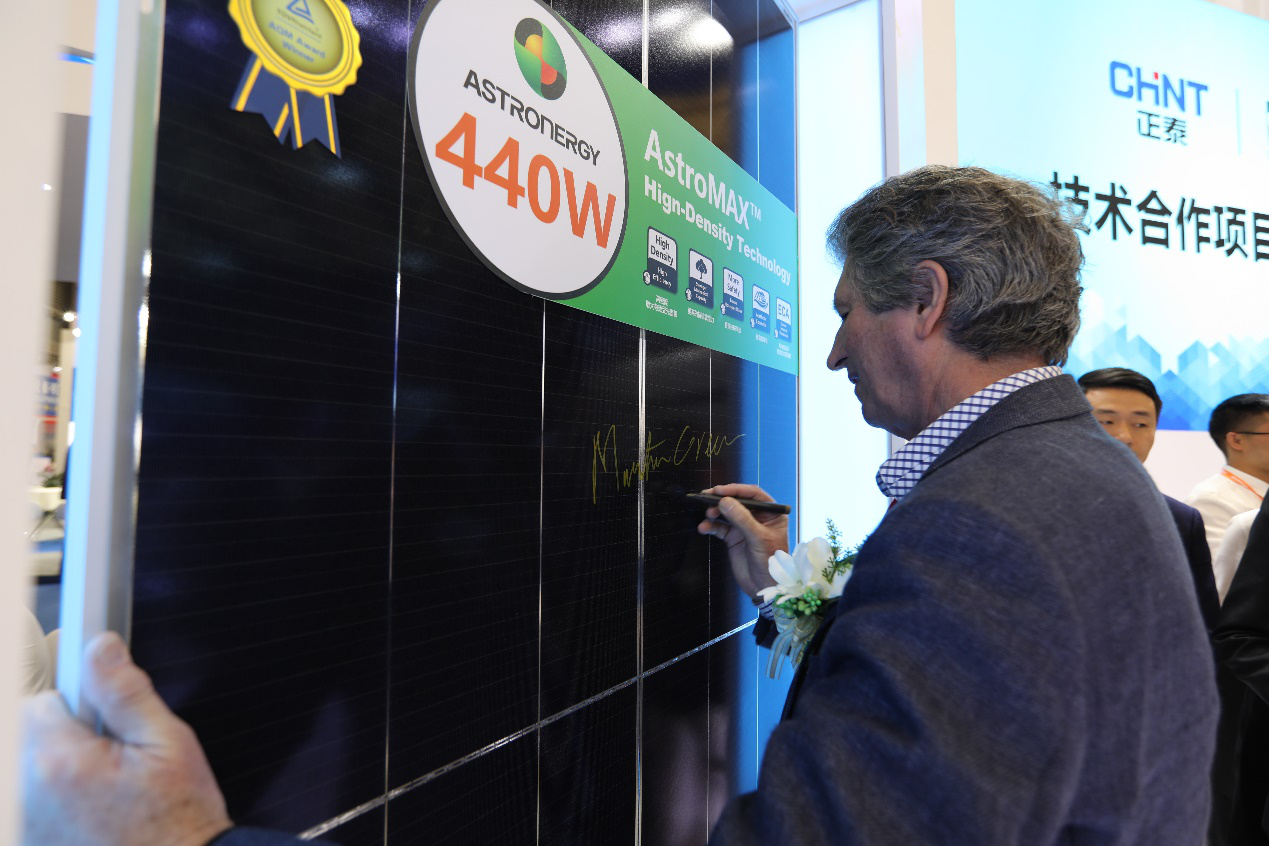 图为马丁·格林教授为正泰AstroMAX高密度组件签名