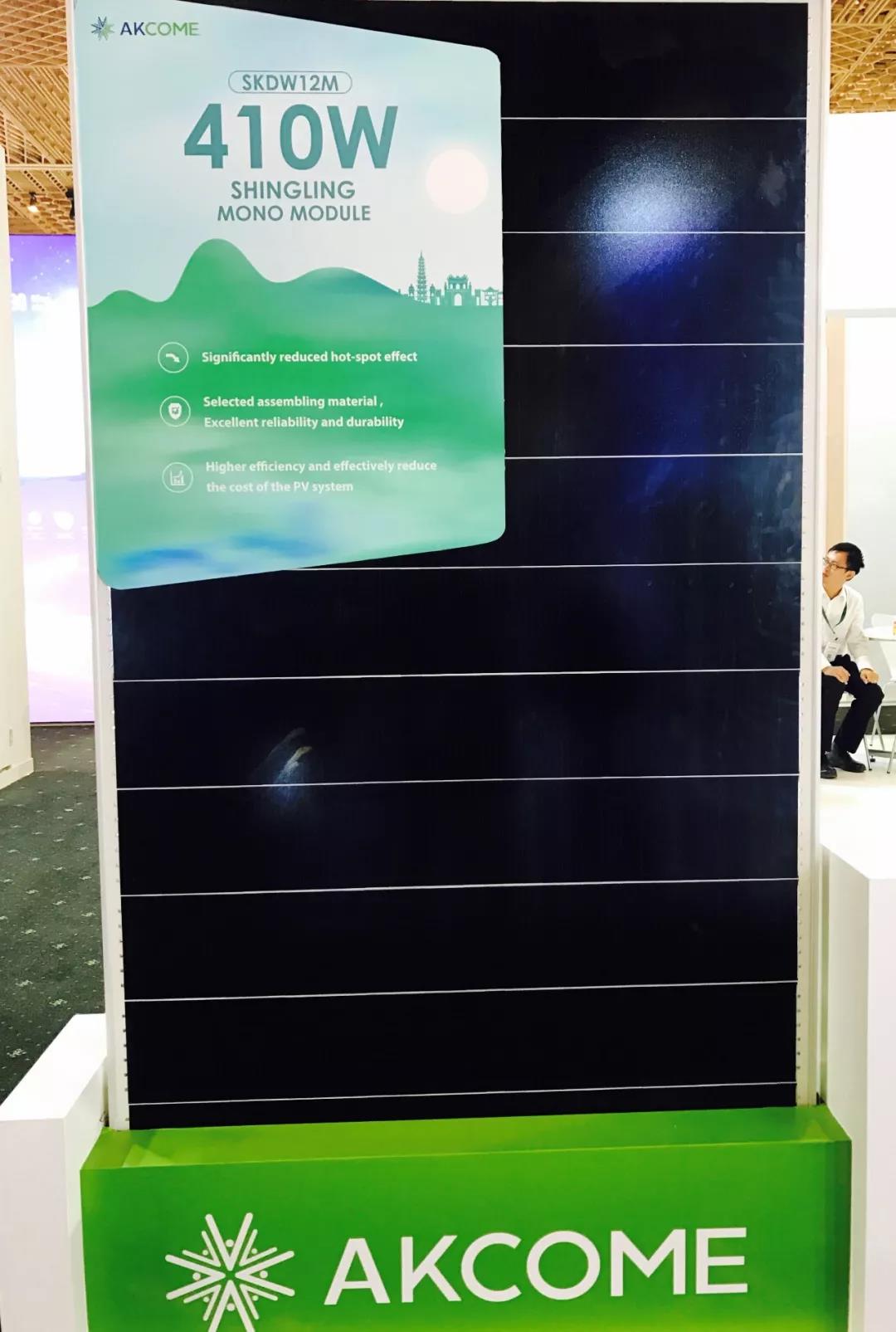 除支架外,爱康光电组件同样出彩,爱康光电坚持走差异化竞争路线,成功下线的“鲲鹏”系列叠瓦单晶组件已多次赢得市场关注,功率可达410W,高精度激光切割、微米级叠片定位,让组件赋予了更高可靠性和完美颜值。组件转换效率不仅相对传统设计获得大幅提升,产品技术优于半片、多主栅等组件技术,优选封装材料,具有更高功率和低热斑效应等优点。