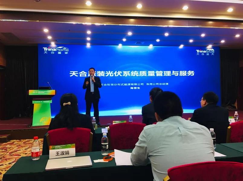 在同期举办的2019中国(济南)分布式光伏创新应用论坛上,天合智慧分布式能源鲁南分公司总经理陈春生详细介绍了天合智慧分布式能源如何为客户提供服务。