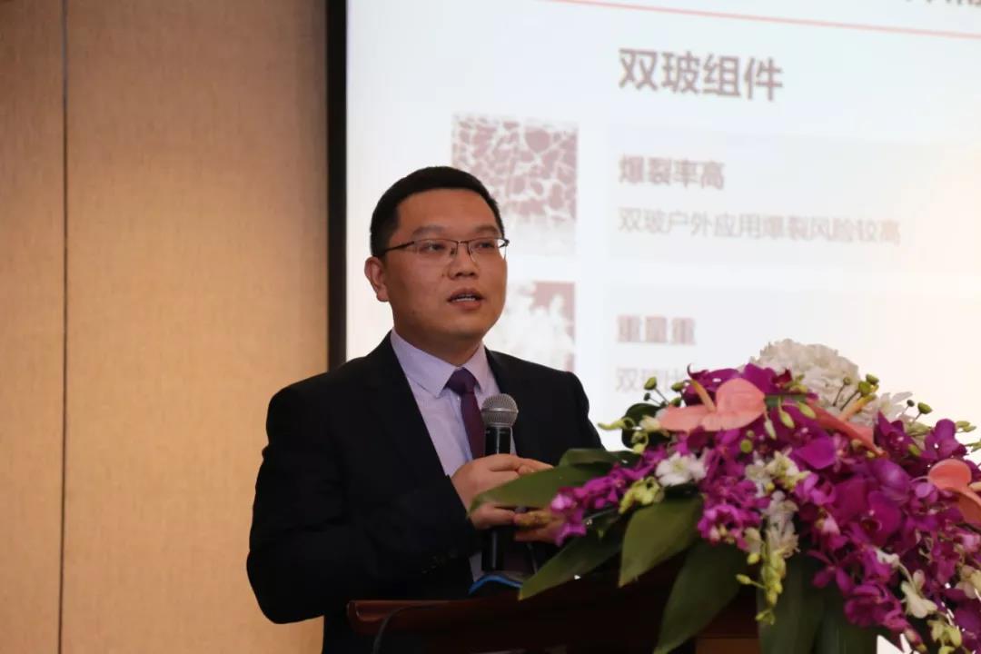 中来新材联席总经理程旭东先生做了一篇题目为《为什么是透明双面氟背板?》的报告,详细阐述了平价上网双面时代情况下,高效、大尺寸、跟踪这几个行业发展关键词,论证了透明背板才是双面组件的最优封装材料。
