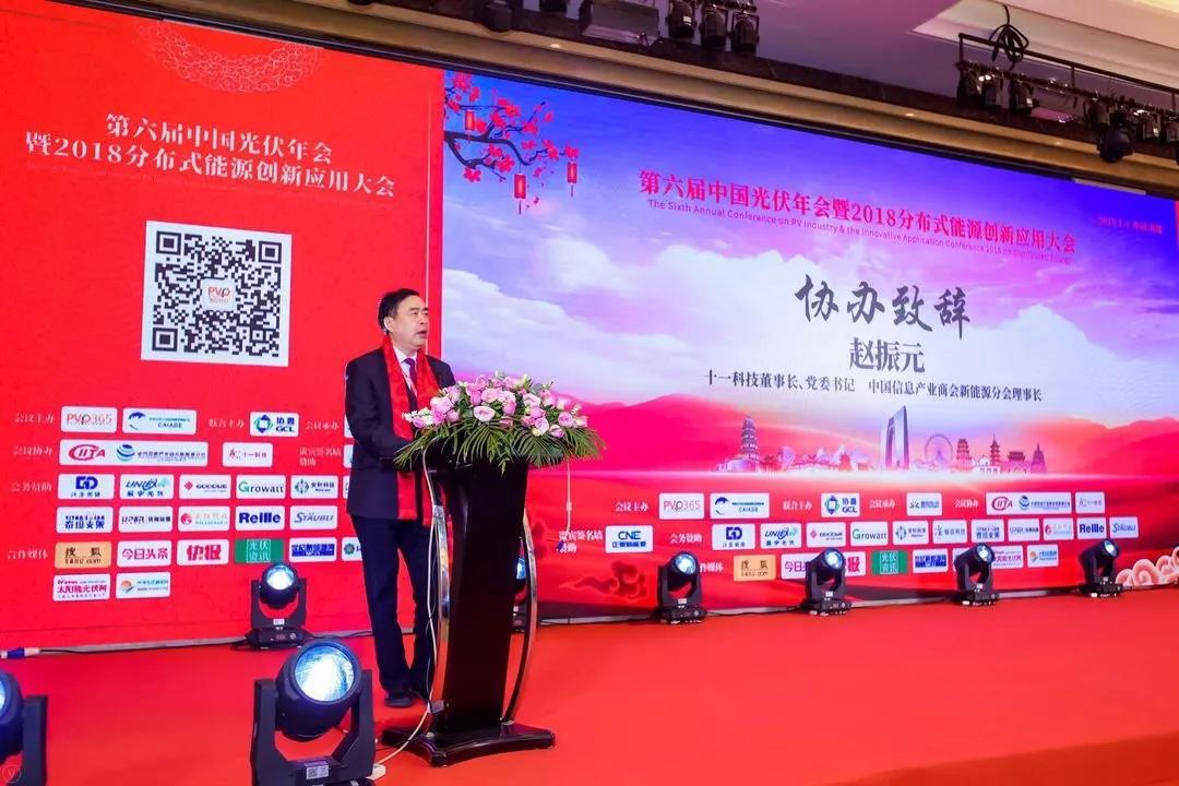 尊敬的各位领导、各位来宾,大家上午好,非常高兴代表中国信息产业商会新能源分会、代表十一科技,共同协办2018年的第六届中国光伏年会。