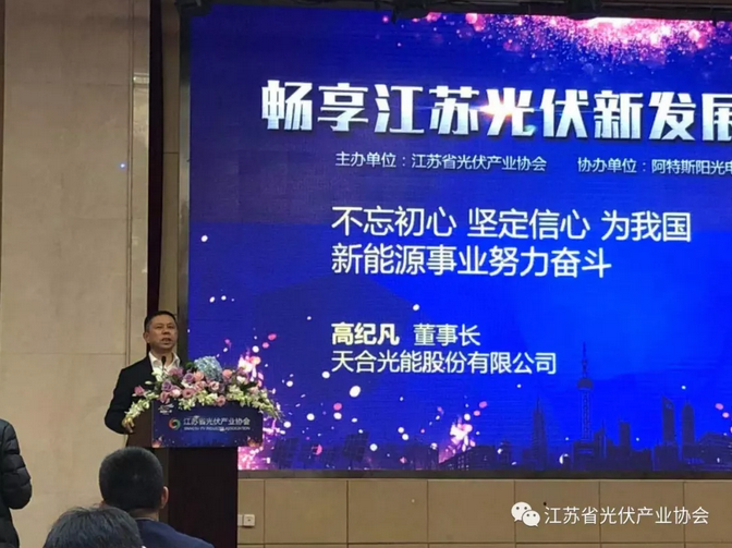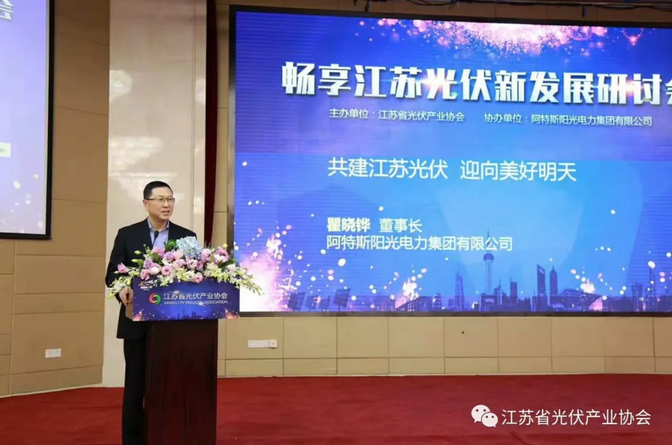 协会理事长瞿晓铧发表《共建江苏光伏迎向美好明天》主题演讲