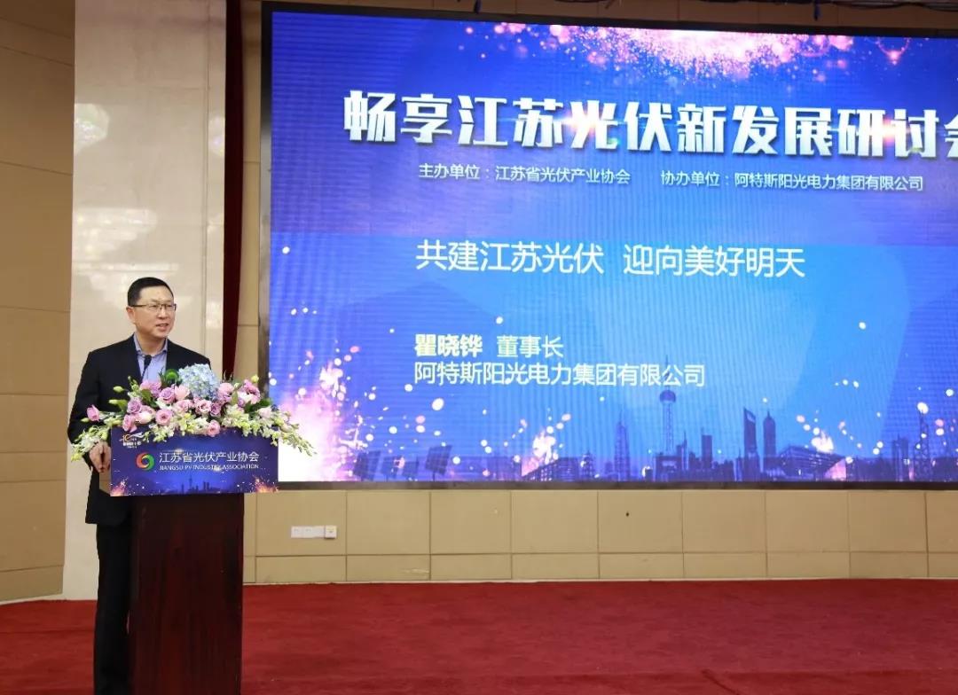 作为江苏省光伏产业协会会长单位,阿特斯阳光电力集团董事长、总裁兼首席执行官瞿晓铧博士出席会议并致辞,同时发表《共建江苏光伏 迎向美好明天》主题演讲。“畅享江苏光伏新发展”研讨会由协会成员企业,保利协鑫能源控股有限公司副总裁吕锦标主持。
